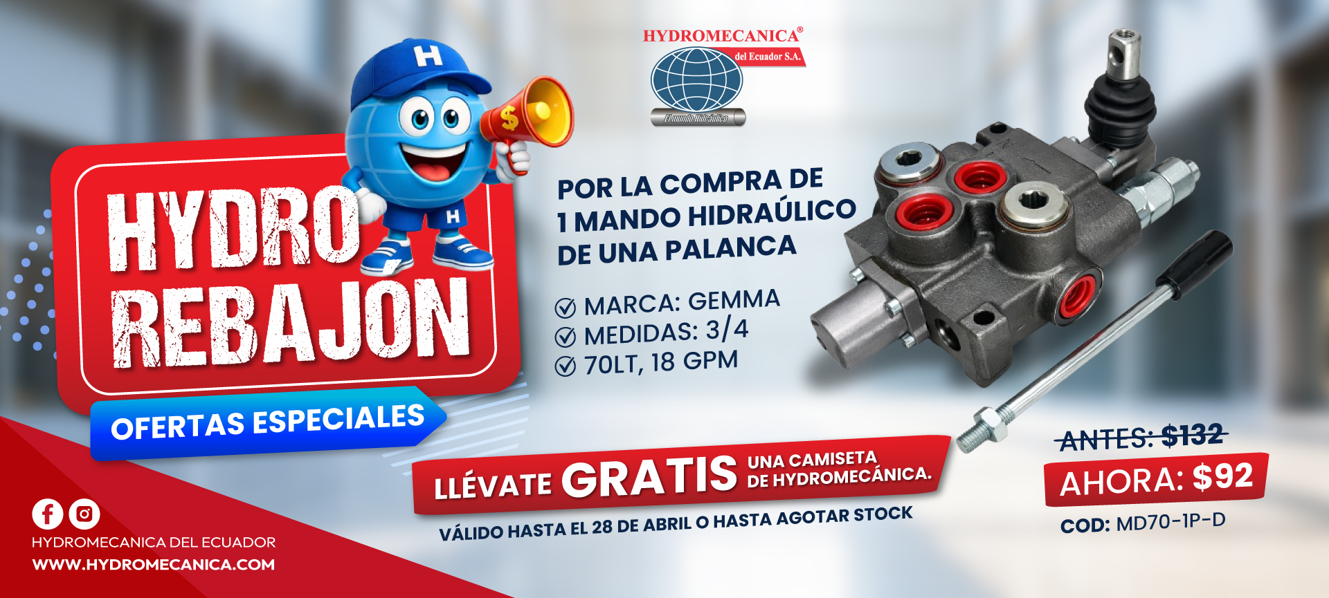 Av. 6 de Diciembre N48-103 y Manuel de Lizarzaburu. Email: ventas_quito@hydromecanica.com / hydecua_iuo@hydromecanica.com - Teléfono: (02) 2 409322 / (02) 2 411921 / 0983729761
