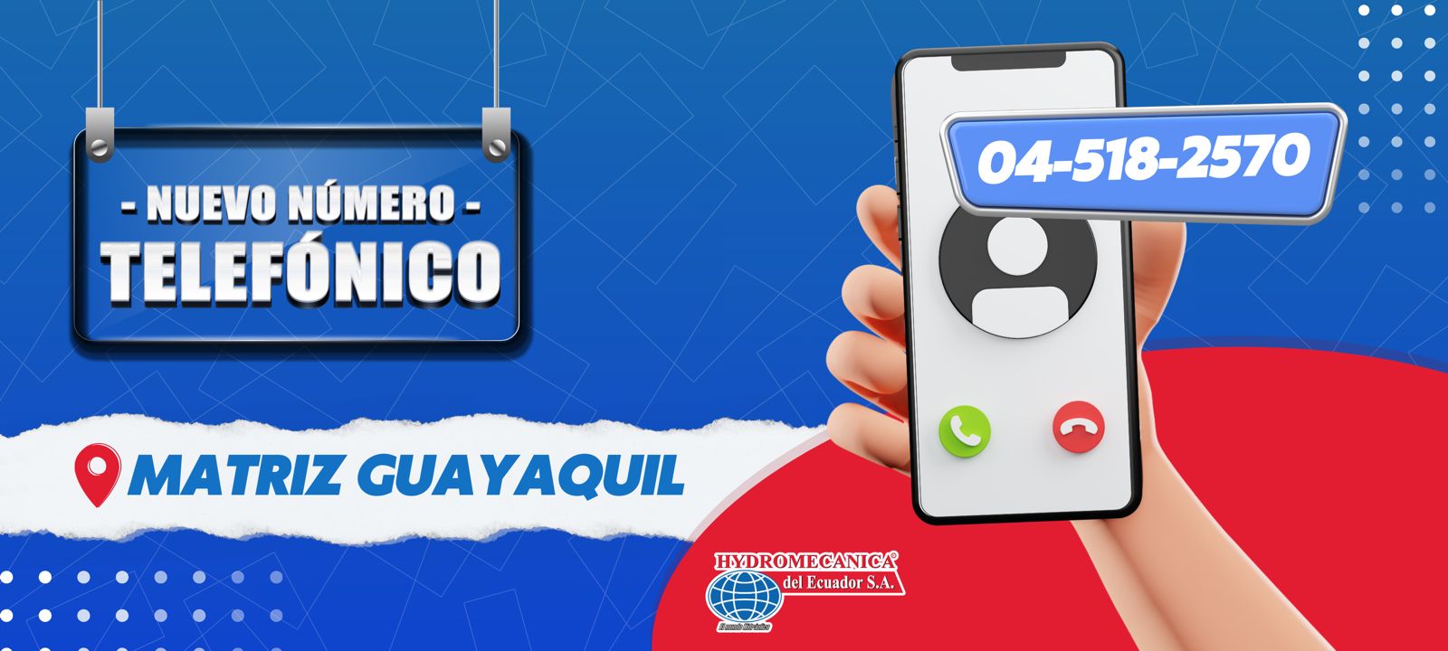 Km.3 Av. Juan Tanca Marengo, Frente a Caterpillar, a lado de las antenas de TV Cable. Email: hydecua_gye@hydromecanica.com Teléfono: 2315850 / Celular: 0997689047